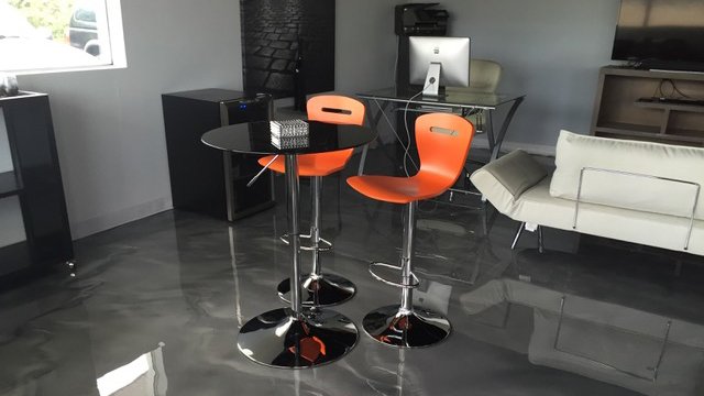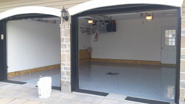 The 100% Solids Epoxy Kit is a Canadian-made industrial strength product that has been especially tailored for residential use. It is a decorative floor finish, packaged and ready for Do-It-Yourself application on garage floors, basements and so much more! It is formulated to provide a sharp finish that can be customized to suit any needs. The 100% Solids Epoxy is featured in a wide variety of designs.